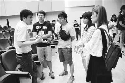 乌仕明(左)向台湾青年介绍求学经验。