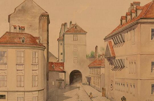 这幅透明水彩画(一种薄贴通透水彩绘画技法)描绘了位于维也纳的一座塔式建筑,在今年被一位女子赠予荷兰阿姆斯特丹 NIOD 战时研究所,但有关部门并未透露其身份。