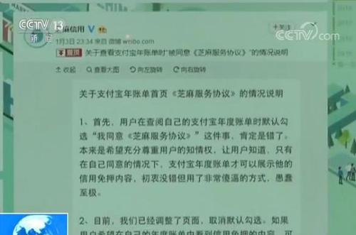 央视网消息:1月3日,不少消费者都在朋友圈晒自己的支付宝账单和年度关键词,这原本只是一场“自我秀”,但很多人没有发现,自己不知不觉又签了一个“服务协议”。这到底是怎么回事呢?我们一起来看一下事情的经过。