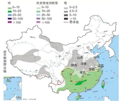 中央气象台预报显示,3日20时至4日20时,陕西中南部、山西南部、河南大部、山东南部、湖北中西部、安徽中北部、江苏中北部等地有大到暴雪,其中,河南南部、湖北东北部、安徽中部等地的部分地区有大暴雪(20-30毫米)。上述地区新增积雪深度5-15厘米,局地可达20-30厘米。另外,湖南西北部、贵州东北部局地有冻雨。