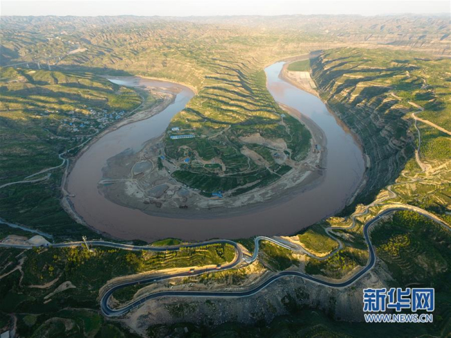 从黄河伏寺湾前穿过的沿黄观光路延安段。新华社记者 邵瑞 摄