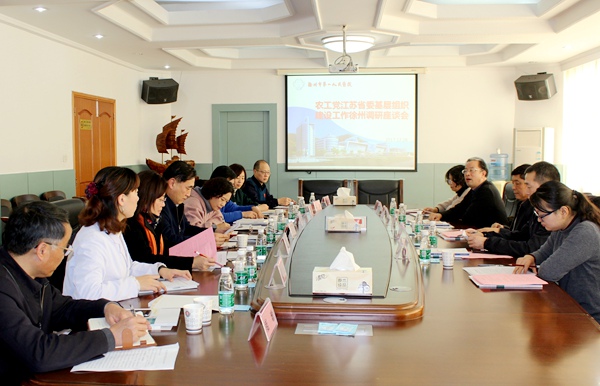 周健民一行首先来到徐州市第一人民医院支部党员活动室,与支部党员面对面交流,详细了解基层组织活动开展情况,对党员活动室利用充分及活动开展有声有色给予充分肯定。随后召开基层组织建设座谈会,农工党徐州市委会主委刘功俭作基层组织建设工作汇报,与会的四名基层组织负责人代表交流基层组织建设经验。