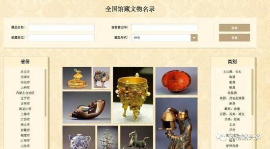 据悉,公众如果想查询全国馆藏文物信息,可登录国家文物局官网,在首页左下角点击“文博数据”,然后进入二级页面查询全国馆藏文物名录。就可以查到文物普查登记号、藏品名称、类别、年代、所属收藏单位、省份等信息,文物图片以及文物的具体介绍还在进一步完善中。