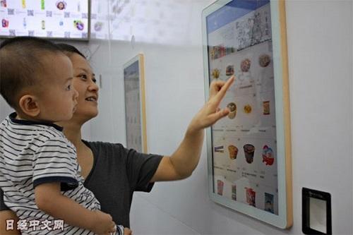 资料图片:在“F5未来商店”通过触摸屏选择商品并结账后即可拿到商品(广州)。(图片来源:《日本经济新闻》网站)