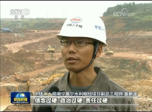 中铁二十局南宁邕宁水利枢纽项目副总工程师 皇新波 :信念过硬、政治过硬、责任过硬、能力过硬、作风过硬,应该成为我们每一名党员的一面镜子,不断自我对照,努力在新时代开创新局面。