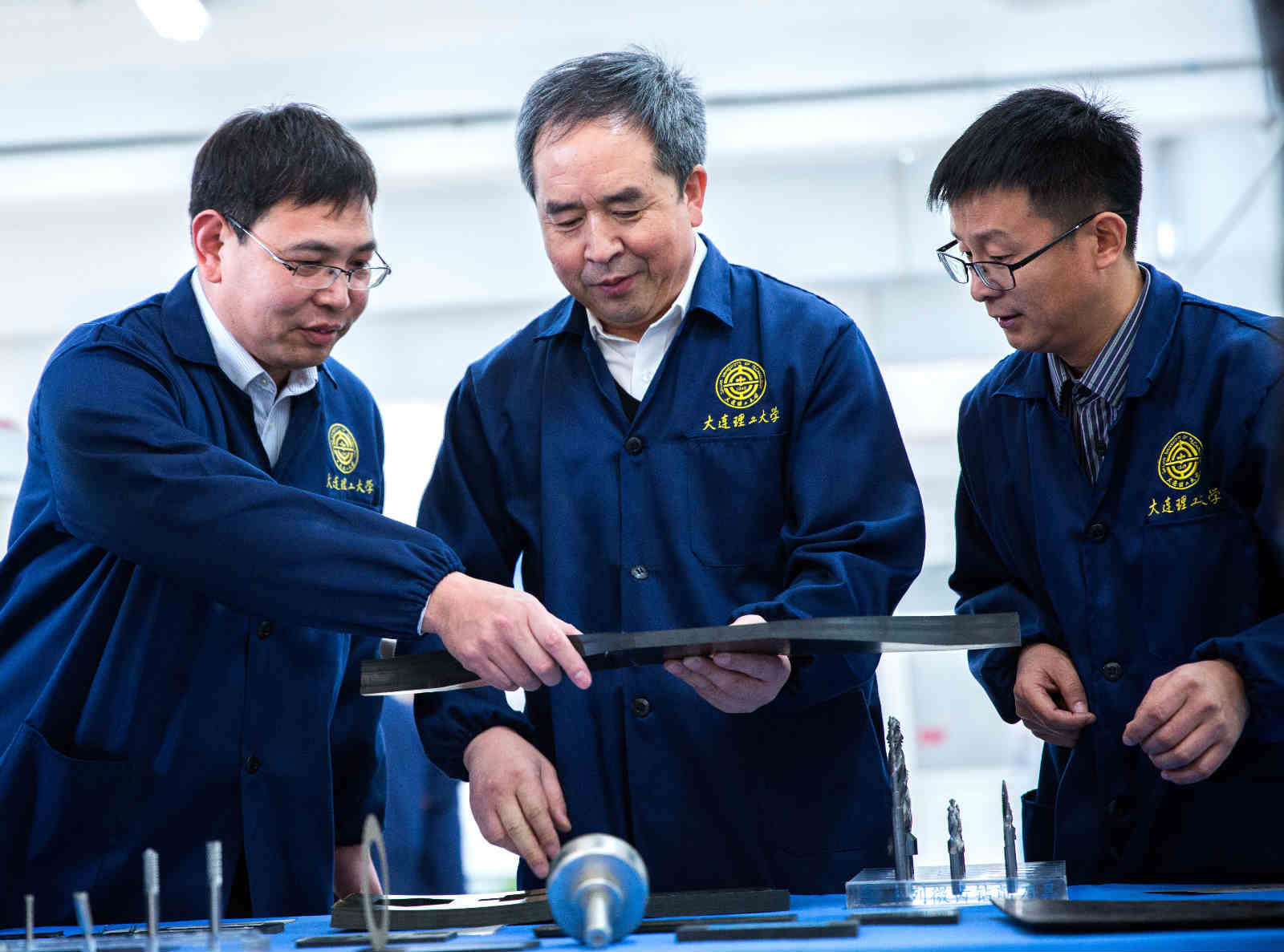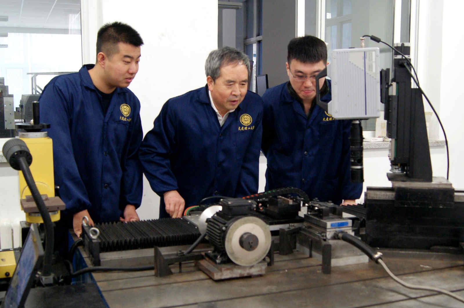 贾振元(中)与团员成员搞研发。大连理工大学宣传部提供