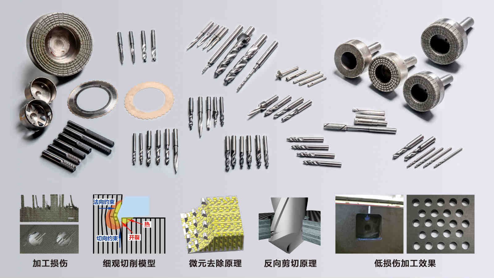 具有“微元去除”和“反向剪切”功能的复合材料系列加工工具。大连理工大学宣传部提供
