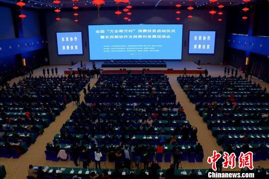 中新网贵州安顺1月10日电 (王林成)10日,全国“万企帮万村”消费扶贫启动仪式在贵州省安顺市举行,来自北京、上海、天津、江苏、浙江、福建、广东、重庆和贵州本地的400余位民营企业代表现场采购来自贵州全省1185家企业的1656种产品,助力贵州脱贫攻坚。