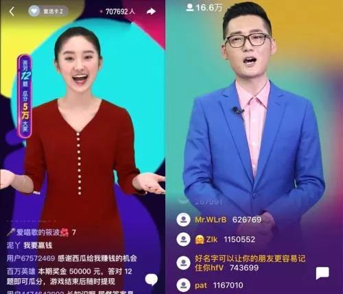 各大直播答题平台的玩法基本一样,由主持人出题,网友在线回答,每场共12道选择题,在指定时间内全答对的人可以瓜分奖金。