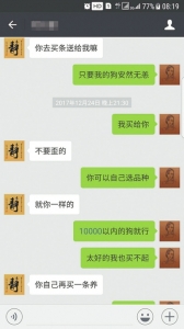 “莱恩”有下落了,小吴满怀欣喜,在2017年12月24日凌晨,加了捡养人的微信,准备要回自己的爱犬。不过,接下来发生的事情,却让小吴非常抓狂。