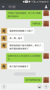 “我家养的动物换了几轮了……鸡鸭兔子,明天给你拍个兔子的照片,养大了,不喜欢就杀来吃了。”