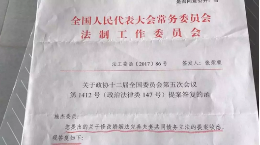 在经过一系列调研和论证后,我写出了《关于修改<婚姻法司法解释(二)>第二十四条的建议》,并提交到2017年的全国两会上。