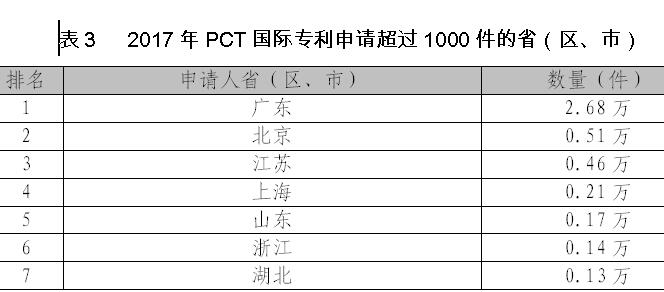 一是我国专利创造水平稳中有进。2017年,我国国内发明专利申请量和授权量稳步提升,分别较2016年增长15.4%和8.2%;每万人口发明专利拥有量达到9.8件,较2016年底提高1.8件。发明专利申请量和拥有量中,国内所占比重进一步提高,分别达到90.2%和67.8%。中西部省份发明专利申请增速达到27.4%,高于东部省份16.8个百分点,区域发展更趋均衡。