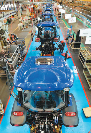 图为位于山东潍坊的雷沃重工阿波斯拖拉机总装车间的生产线。党的十九大召开,明确以供给侧结构性改革为主线,推动经济发展质量变革、效率变革、动力变革,提高全要素生产率。