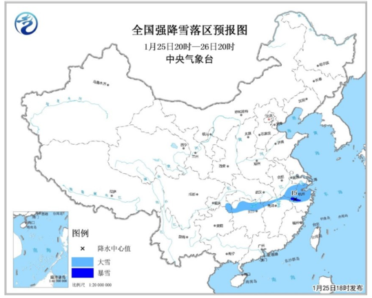 25日18时暴雪预警降级为黄色 浙江等4省市有强降雪