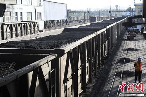 山西汾西煤矿货运站一列满载即将外销煤炭的列车。(资料图片) 中新社记者 韦亮 摄
