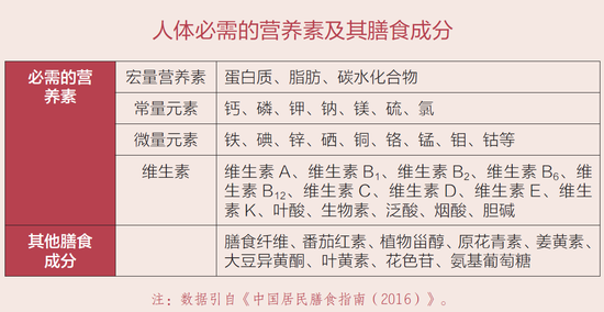 目前已知人体需要的营养素有40 多种,这些营养素都要从各种食物