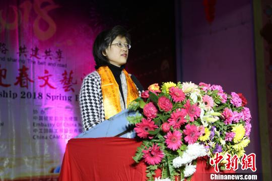 中国驻尼泊尔大使于红在致辞中介绍了2017年中国的发展情况,并回顾了中尼关系在2017年所取得的新成就、新发展?!爸泄娉舷M岵炊迪治榷ê头⒄梗讣绦忧恐心岷献?,推动两国关系不断向前发展。”她说。