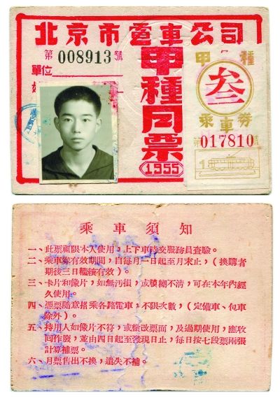 1955年11月,北京的月票正式分为四大类:职工、学生、普通和公用。市工、市学月票在市区内线路使用,通工、通学月票在全市线路都可使用。