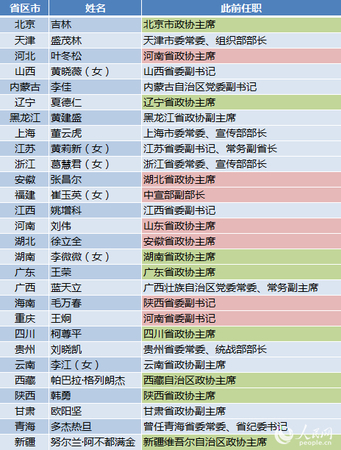 表:28省区市新一届政协主席一览(截至2018年1月29日)