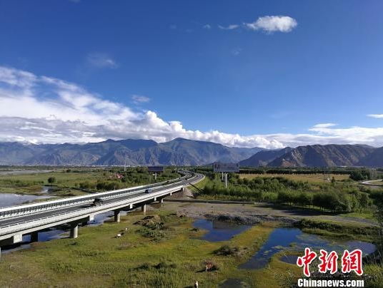 拉萨贡嘎机场快速通道景观带。(资料图)赵延摄