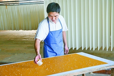 刘靖在展示洒金工艺 资料图片