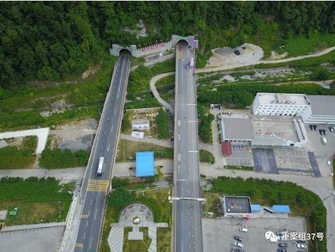 其中,隧道部分净宽10.5米,隧道入口洞门两侧设置有立面标记;桥梁部分为15.25米等宽设计,两侧采用混凝土护栏,直接连至隧道洞门端墙处,入口右侧检修道内边缘距桥梁护栏内侧5.13米,道路横断面组成为客车道、货车道、从服务区驶入主线的加速车道及硬路肩四部分,宽度分别为3.75米、3.75米、3.75米、2.85米,加速车道全长198.8米,在隧道入口前11.5米处汇入行车道。