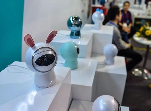 ▲资料图片:2017年11月17日,在深圳举行的第十九届中国国际高新技术成果交易会上展出了双语教育类机器人。