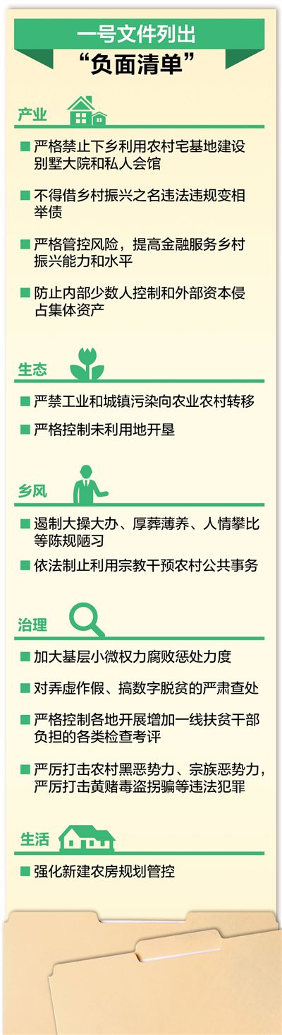以往中央一号文件多是聚焦某一项具体工作,今年中央一号文件的突出特点是管全面,把创新、协调、绿色、开放、共享的新发展理念贯穿始终,坚持农业农村优先发展,按照乡村振兴五个方面的总要求,统筹谋划农村经济建设、政治建设、文化建设、社会建设、生态文明建设和党的建设,加快推进农业农村现代化,实现农业全面升级、农村全面进步、农民全面发展。
