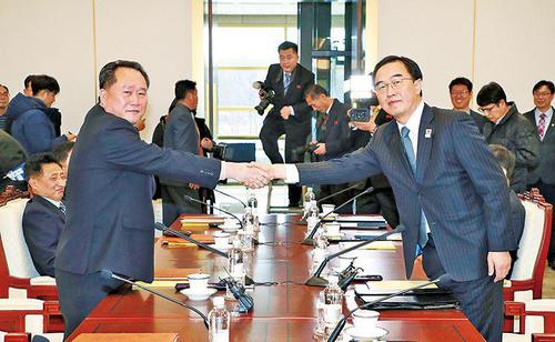 2018年新年伊始,朝韩双方一改“剑拔弩张”“唇枪舌?!钡某L?,搁置核武器和萨德的纷争,摆出“双暂?!钡淖颂贫禄嵴箍嘶摹捌票被崽?,并取得了诸多成效。例如,朝韩双方将在冬奥会开幕式上共同执朝鲜半岛旗帜入场、朝鲜艺术表演团到韩国进行开幕式表演、朝韩双方就未来改善双边上表达了积极的意愿……