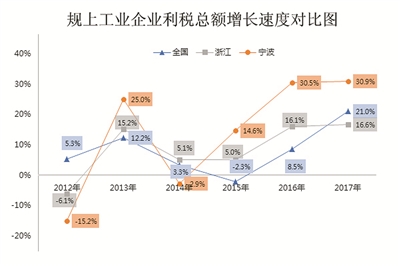 来自宁波市经信委的统计数据显示,全市规上企业去年实现工业增加值3266.7亿元,同比增长9.6%,总量规模首次突破3000亿元大关,增速创2012年以来新高;全市规上工业企业实现利税总额2097.9亿元,同比增长22.5%,其中利润总额1264.1亿元,同比增长30.9%,增速连续两年在30%以上。