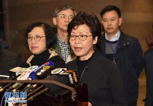 2月10日,香港特区行政长官林郑月娥在威尔斯亲王医院向媒体通报情况。新华社发(王玺摄)