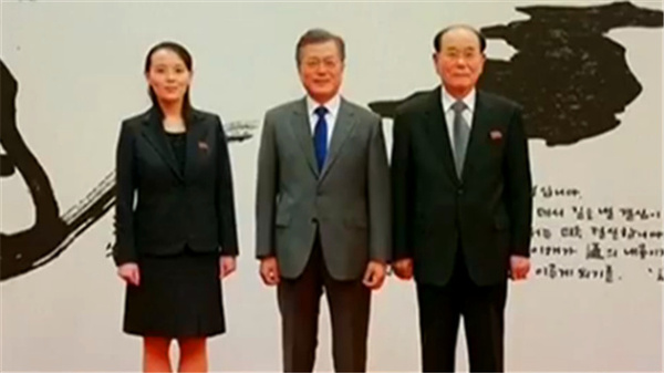 由朝鲜最高人民会议常任委员会委员长金永南率领的朝鲜高级别代表团出席了平昌冬奥会开幕式,并与韩国总统文在寅举行会见。作为朝鲜最高领导人金正恩特使的金正恩妹妹、劳动党中央委员会第一副部长金与正向文在寅转交了金正恩关于改善朝韩关系的亲笔信,并转达了他对文在寅访问朝鲜的口头邀请,显示了朝方对缓和半岛局势、推进北南和解的愿望。
