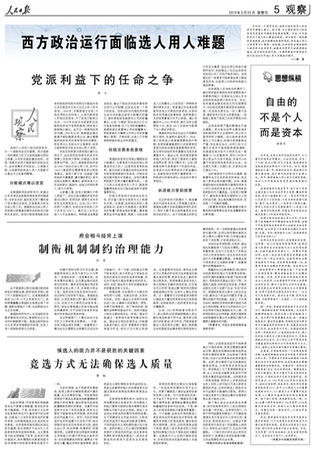 人民日报整版刊文:西方政治运行面临选人用人难题
