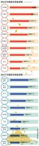 此外,在华人富豪中,好未来的张邦鑫以365亿元财富位列2018胡润全球富豪榜第360名,比去年上升564位。身兼易车、摩拜、蔚来三家公司董事长的李斌以88亿元财富进入2018胡润全球富豪榜,位居1959位。