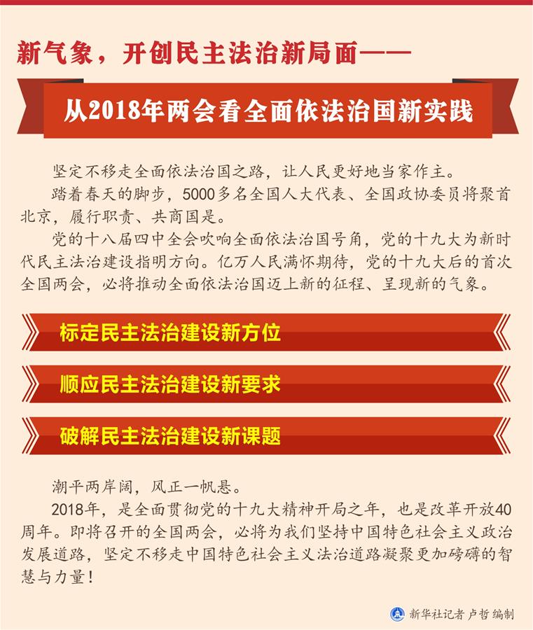 新华社北京2月28日电 题:新气象,开创民主法治新局面——从2018年两会看全面依法治国新实践