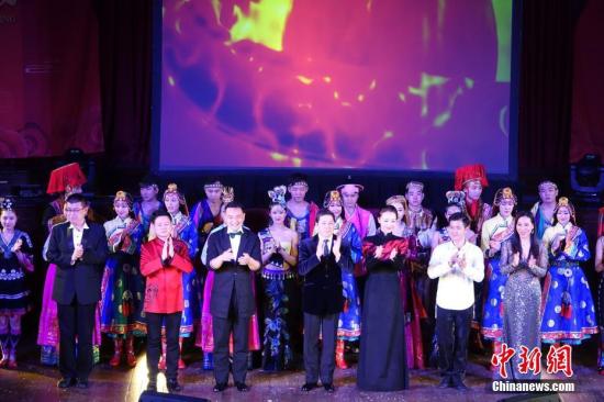 当地时间2月22日晚,2018“四海同春”欧洲团亮相英国剑桥市政厅,为当地侨胞们献上了一台充满中华文化魅力的艺术盛宴。图为演员集体谢幕。中新社记者冉文娟摄