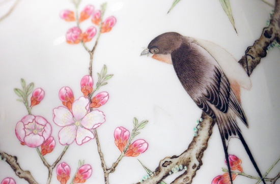 雍正粉彩花鸟抱月瓶,大维德基金会藏