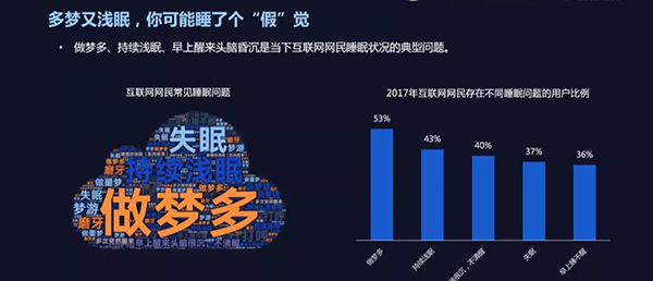 CBNData数据分析师龚萌菡表示,通过对全国10个主要城市网民的睡眠状况调研,结合阿里消费数据,CBNData在《2018中国互联网网民睡眠白皮书》中,总结了现下互联网民的睡眠之“痛”,及线上助眠产品的消费趋势和人群偏好。