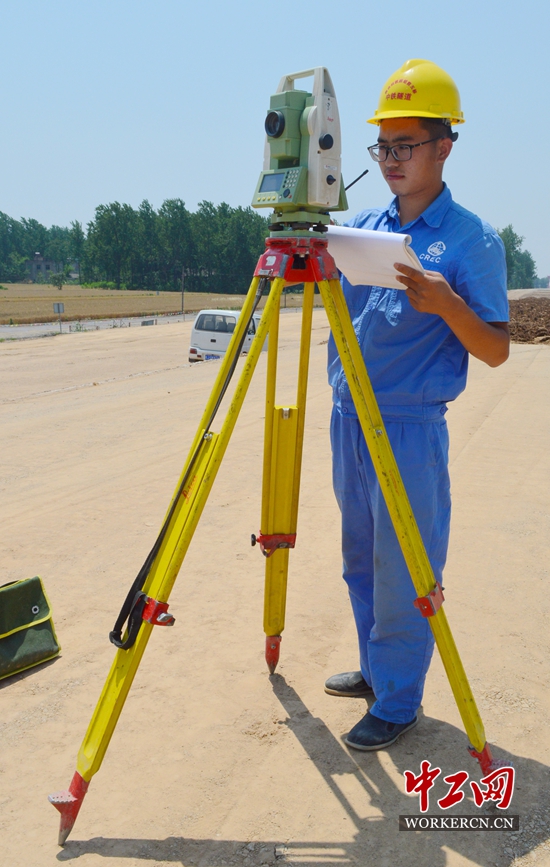 商合杭铁路古城特大桥钢混结合连续梁结构设计新颖,全长253.5m的梁体设计为5×50.7m的上承式结构,结合梁采用大面积薄层环氧树脂砂浆作为钢梁与砼桥面板的粘结传力层,两项均为高铁桥梁的创新设计,施工质量要求极高。钢混结合梁的施工是新工艺、新工法,施工过程中250米的钢箱梁是由26个节段、52块钢梁焊接而成,在吊装、拼接、焊接、桥面板安装等过程中,需要测量人员全过程测量,施工时中又正值夏季,站在毫无遮拦的桥墩上进行工作,毒辣的阳光无情地晒在叶子阳的身上,他的皮肤被晒成了泛着油光的“漆黑”色。如果有人到工地上找他,即使不认识的人凭着一句“你去工地上找那个黑人就行了”保准能找得到,因为工地上没有比他更黑的了。