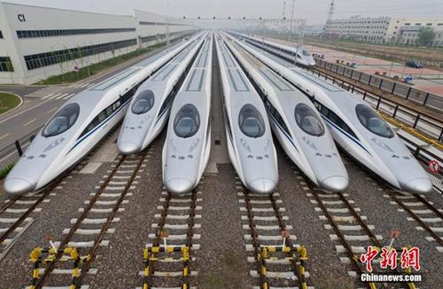 资料图:青岛造高速动车组准备出厂投入运营。中新社发徐崇德摄