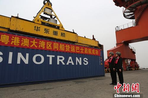 资料图:1月23日,“粤港澳大湾区同船货运巴士”在广州中外运黄埔仓码头正式启动。图为航线启动。中新社记者唐贵江摄