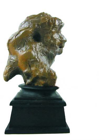 大漠石在当代中国赏石史上的异军突起,固然与“雏鸡破壳”的发现者张靖分不开,更多还是大漠石本身造化的不可思议,不可思议的完美形象,不可思议的完美比例,不可思议的完美细节,如果知道大漠石的成因自会明白这四个字意味着什么。一次次的火山喷发,成团的岩浆毫无意识地被抛洒在戈壁黄沙中,却在自然冷却后以其质坚如玉、色润如玉、声鸣如玉而构成中国赏石中独具人文色彩的大漠石系,其中的极品奇石常被赏石界称之为天意,如出自内蒙古阿拉善的大漠玛瑙“北京猿人”,收藏者曾向我征询过命名,我提出了“智人”一说,对比人类进化图表会发现,这块闪烁着古铜色泽的大漠奇石与北京自然博物馆里的智人形象十分相似,区别就在于图片中的智人是直立行走,而这块奇石则是完整的头部,看上去像是艺术家根据博物馆复原图片创作的智人雕塑:蓬张的长发、凸起的眉骨、阔大的口吻,眼神闪射出的智慧之光依然带有丝丝野性……从历史的角度考量,它最终被定名为“北京猿人”。