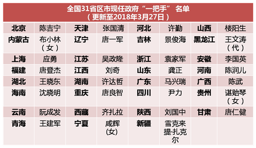 王文涛任黑龙江代省长 盘点现任31省份政府“一把手”名单