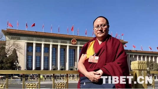 图为全国政协委员达扎?尕让托布旦拉西降措在人民大会堂前留影 本人供图