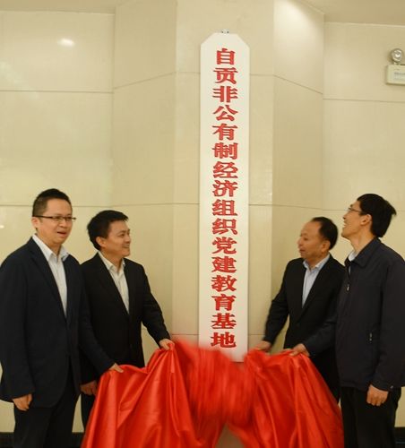 与会嘉宾们为自贡非公有制经济组织党建教育基地揭牌。刘忠俊摄