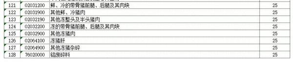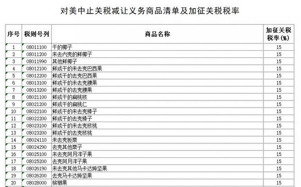 附对美中止关税减让义务商品清单及加征关税税率