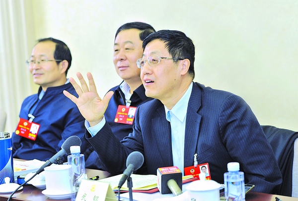3月6日,住疆全国政协委员武钢在分组讨论政府工作报告、计划报告和预算报告时就推进新疆绿色电力发展、调整能源结构等提出建议。□本报记者卢民一摄