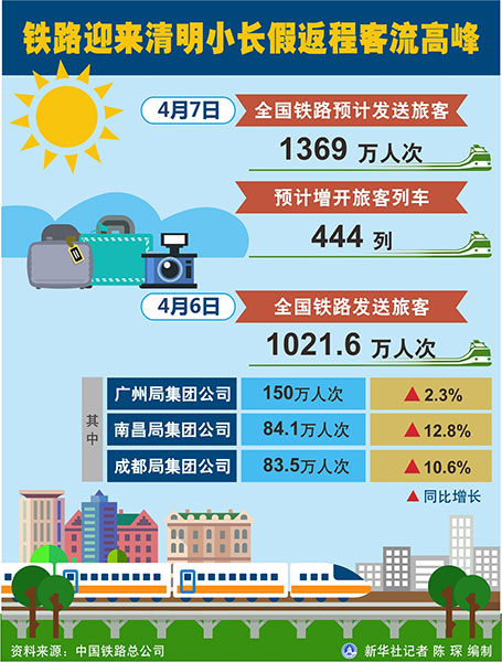 图表:铁路迎来清明小长假返程客流高峰 新华社记者 陈琛 编制