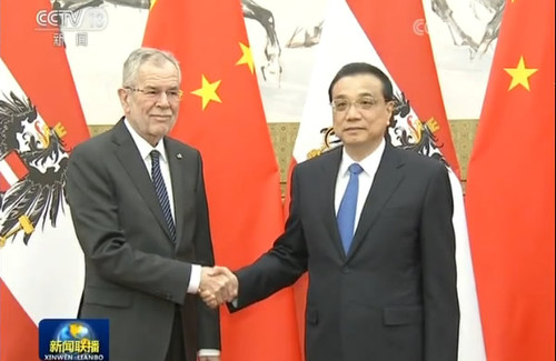 李克强欢迎范德贝伦总统和库尔茨总理联袂访华。他表示,奥地利是中国在欧洲的重要伙伴。习近平主席同总统先生举行会谈,共同规划两国关系未来发展。中方愿同奥方抓住机遇,对接发展战略,深化人文交流合作,全面提升两国关系水平。